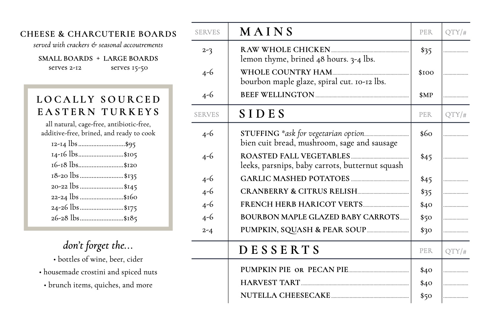 • Cheese and Charcuterie Boards